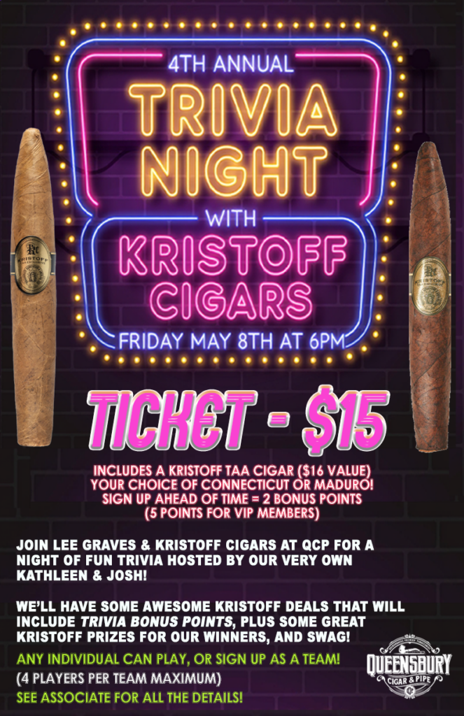 • We have over 50 cigar brands to choose from, including big names like Davidoff, Montecristo, Drew Estate, Alec Bradley, Macanudo, Oliva, Rocky Patel, Arturo Fuente & many many more; to boutique companies like Kristoff, My Father, Villiger, La Palina, & Tatuaje – A huge selection for serious aficionados & newcomers alike!